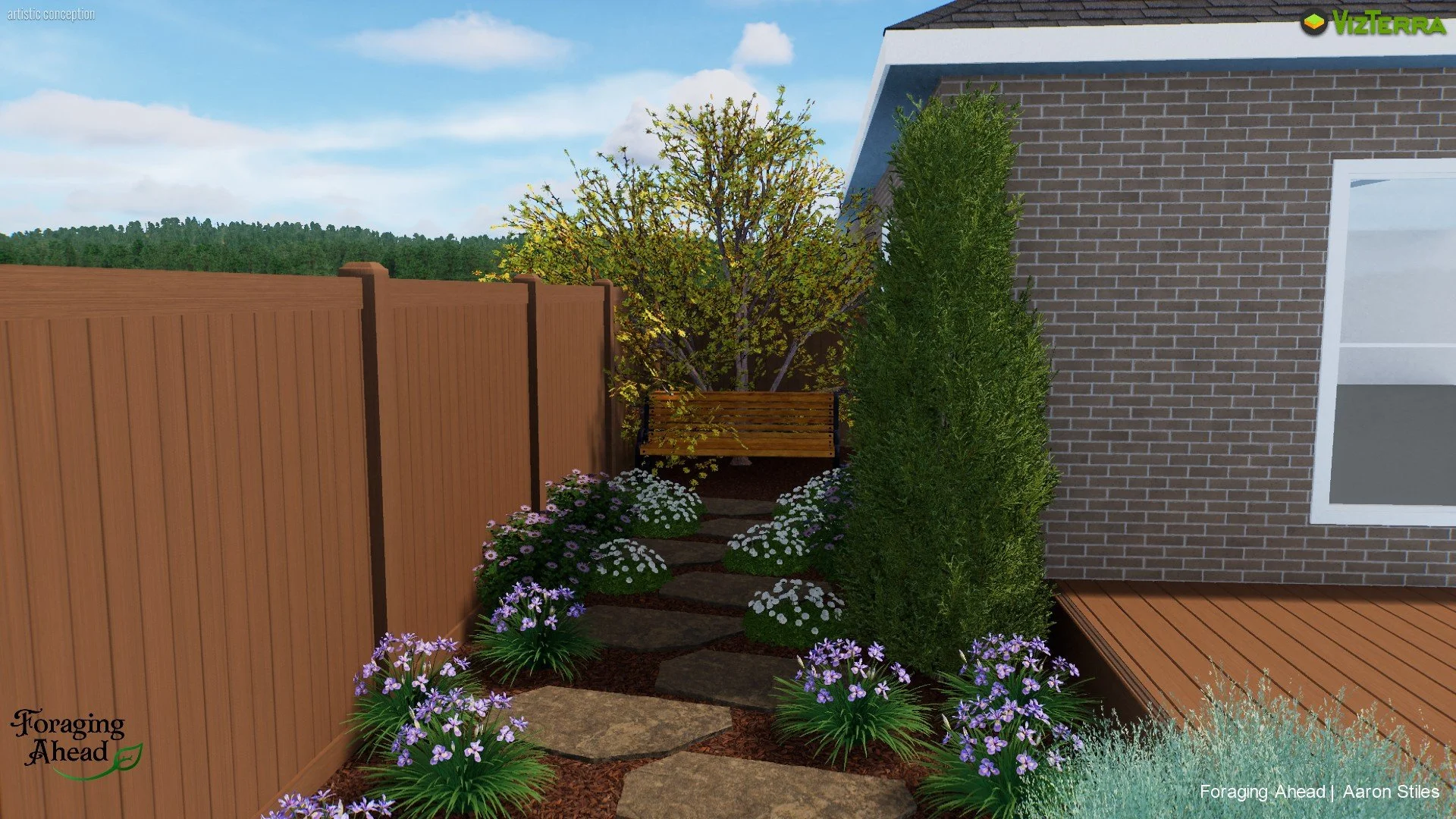 Shade garden landscape design for oak tree shade